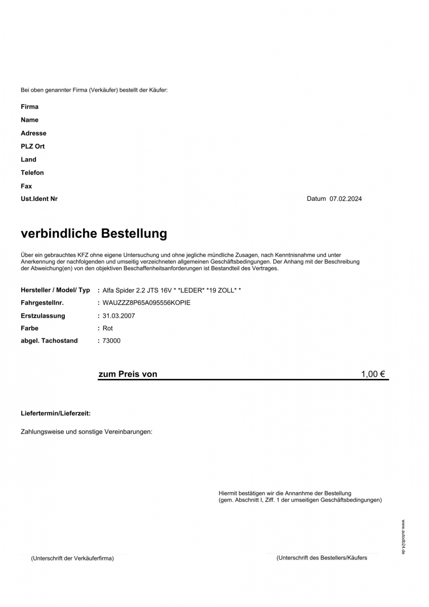 AutoDB_Admin 31 Okt. 2024 Test Preisschild Finanzierungsangebot Geldwäschegesetz 1 Geldwäschegesetz 2 Checkliste Teil 1 Checkliste Teil 2 Vollmacht Zulassung Blanko Einkaufsvertrag Vermittlungsauftrag 1 Vermittlungsauftrag 2 Lieferantenstamm KFZ Hersteller Übersicht KFZ Länder Kundenstamm Lieferschein Datenschutz DSGVO Quittung Kaution Ausfuhr1 Ausfuhr2 Quittung Blanko Probefahrt Bestandsliste Liste verkaufter KFZ Blanko Kaufvertrag Kundenvertrag Kundenvertrag Kundenvertrag Kundenvertrag Kundenvertrag « ‹ von 4 › »